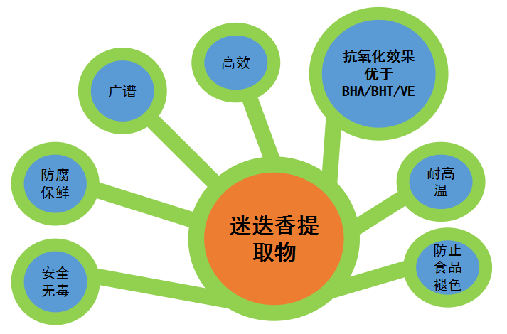 因此在食品补充剂、食品饮料、鲜肉、面馆甚至调味品等领域都能发挥其天然防腐抗氧化作用。被誉为世界公认的第三代绿色食品抗氧化剂。