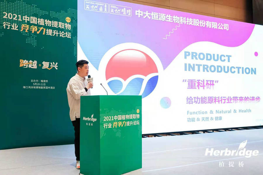 2021年5月20-21日第12届中国植物提取物行业竞争力提升论坛在海口市举行,U8国际销售总经理金子恒应邀参会,并在论坛作了《“重科技”给功能原料行业带来的进步》主题演讲,引发与会人员的广泛关注。