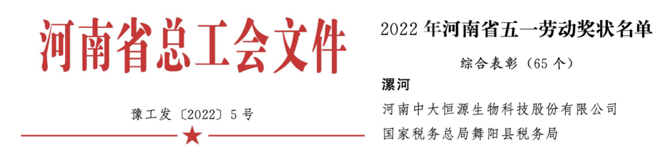 在2022年4月27日召开的庆祝五一劳动节暨河南省五一劳动奖表彰大会上,我公司喜获“五一劳动奖状”殊荣。