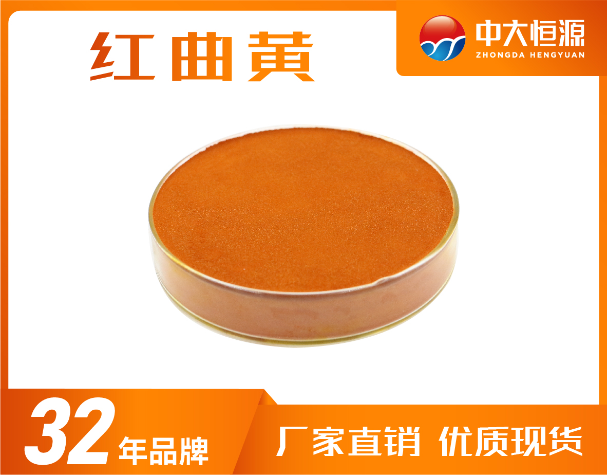 产品特点:橙红色至黄褐色粉末,无异味;易溶于水,溶液呈黄色至橙黄色;光、热稳定性好;在pH值5.0—10.0之间稳定。