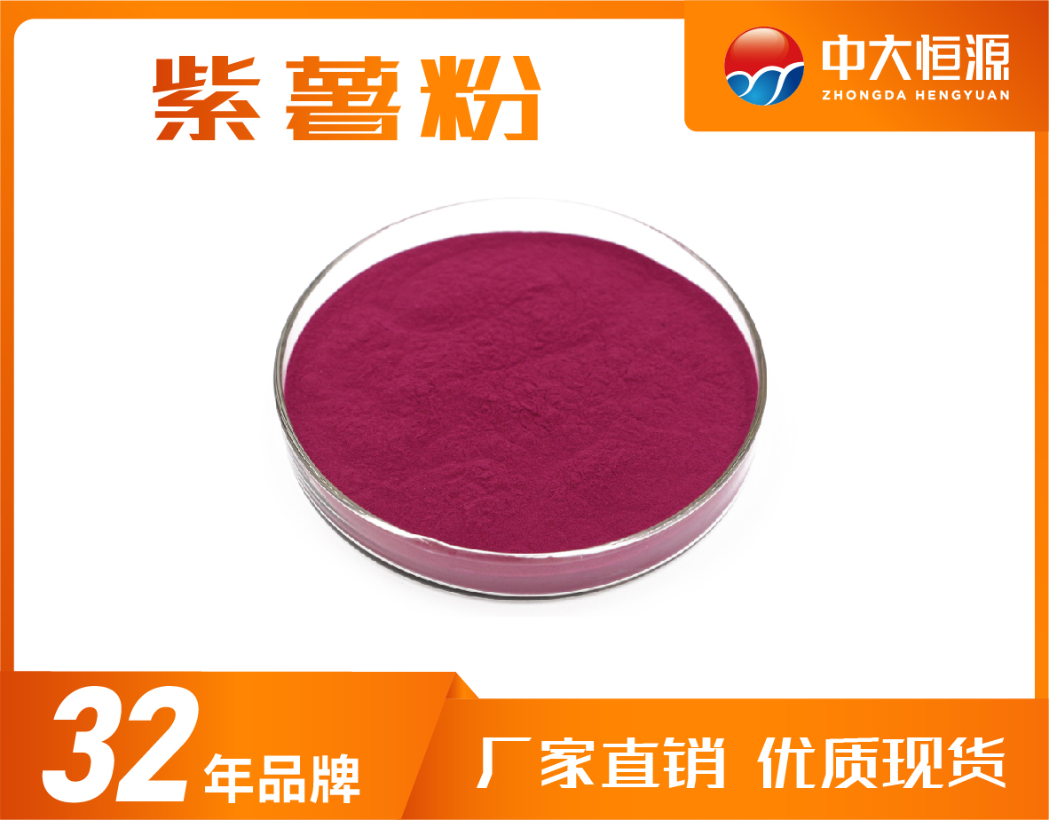 以新鲜优质的紫薯为原料,经破碎,干燥等工艺加工而成,具有浓郁的紫薯滋气味,保留了紫薯的营养成分,且附带着色功能。
